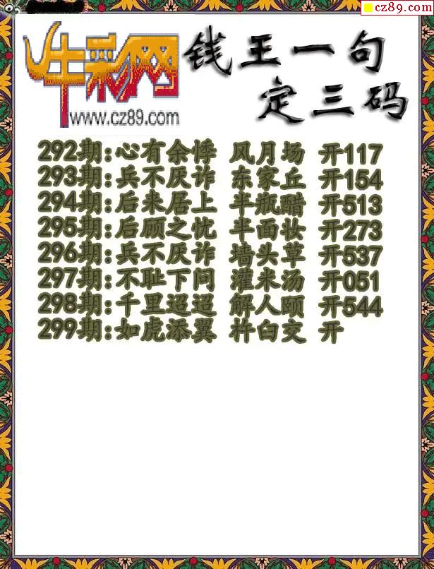 福彩3D2025299期钱王一句定三码字图谜